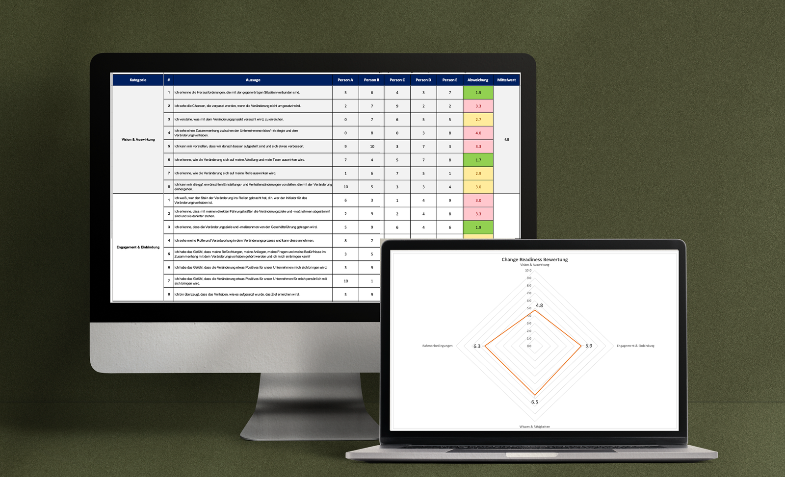 Change scheitert selten an der Idee – fast immer an fehlender Klarheit im System: Was ist wirklich los? Wer ist betroffen? Wo sitzt der Widerstand? Welche Risiken sind real – und welche nur Bauchgefühl?